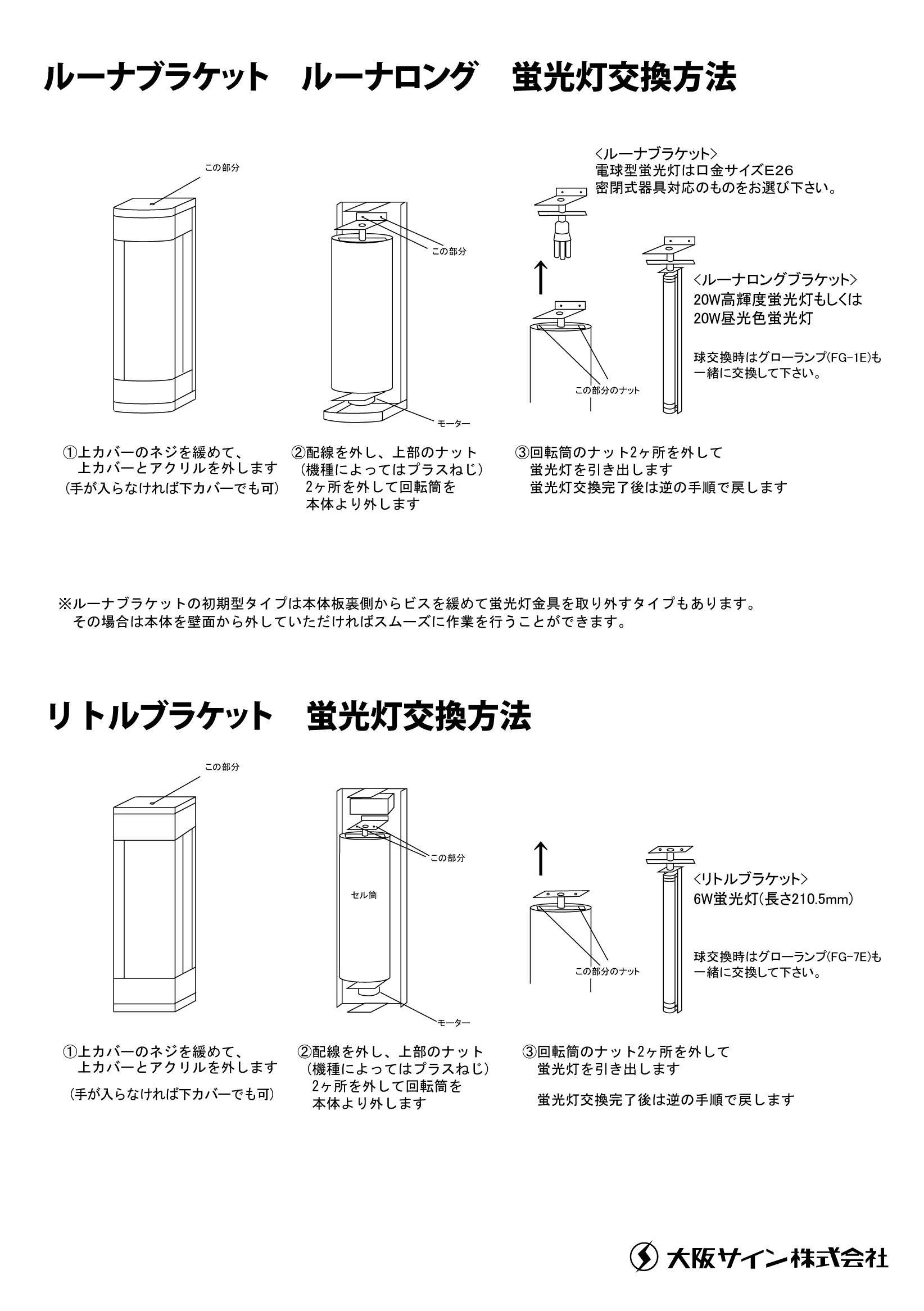 ルーナタイプ、リトルタイプ 蛍光灯交換